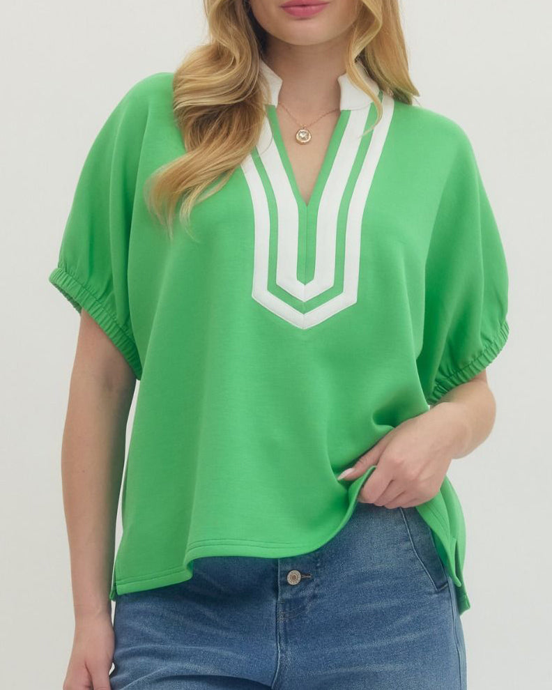 Knit Top with Contrast Trim - Green