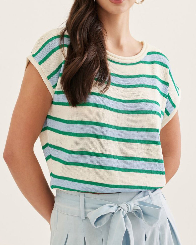 Stripe Cap Sleeve Top - Cream/Green