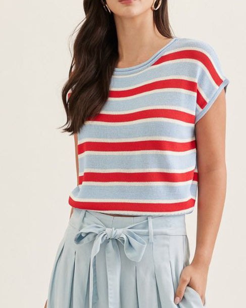 Stripe Cap Sleeve Top - Blue/Red