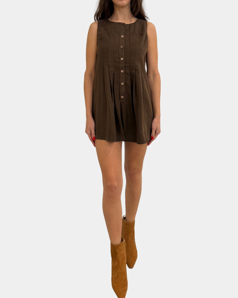 Sleeveless Romper - Brown
