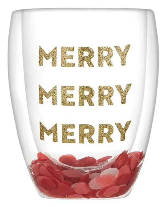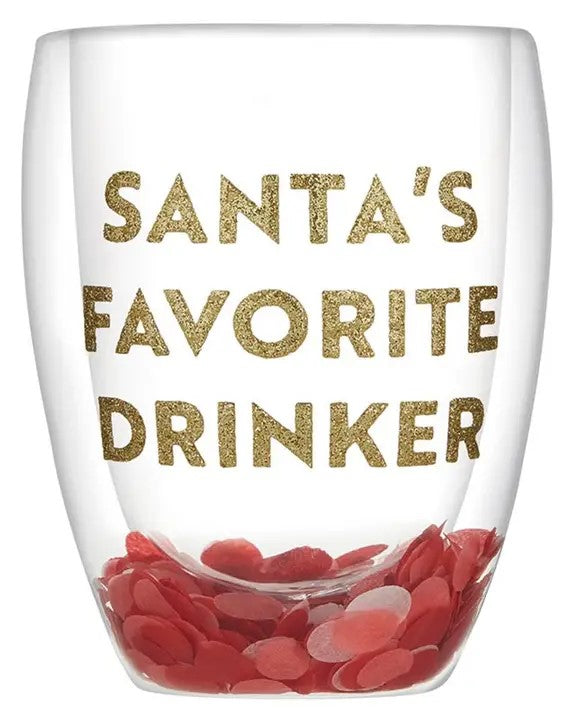 Double Wall Confetti Wine Glass - Santa's Favorite Drinker