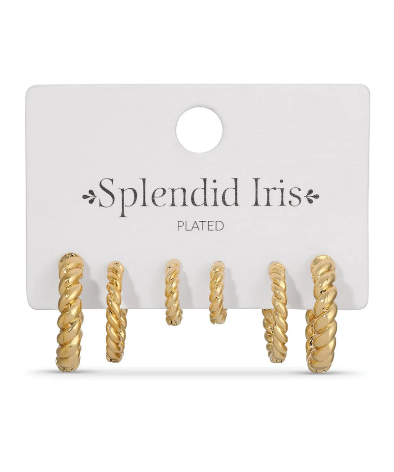 Twisted Huggie Earrings Set - Gold