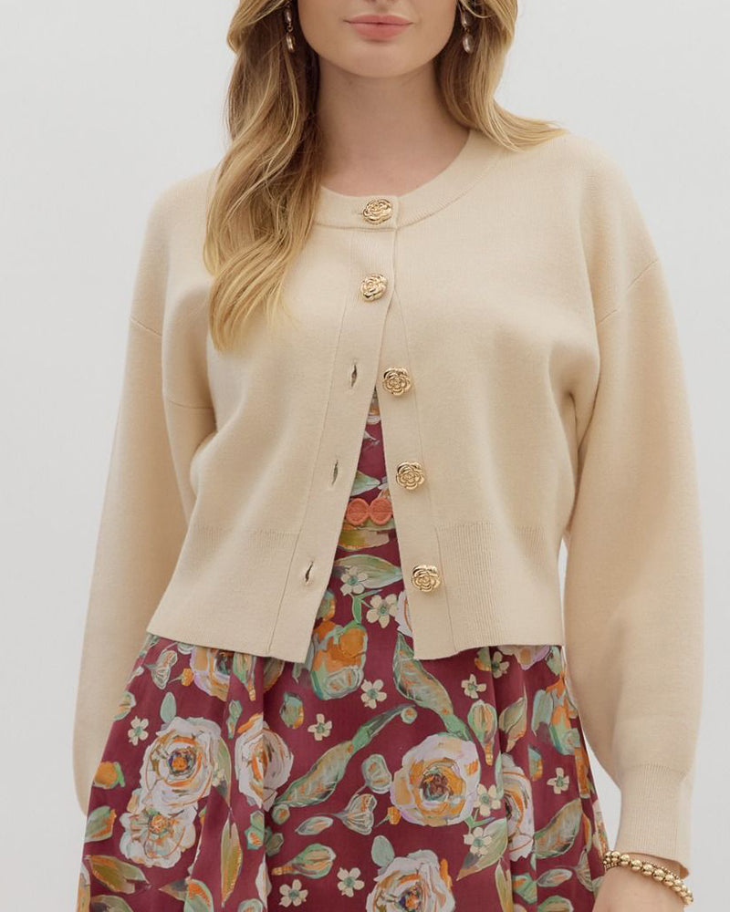 Gold Button Down Cardigan - Ecru - FINAL SALE