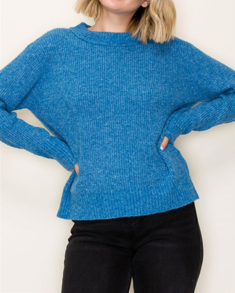Ribbed Crew Neck Pullover Sweater - Light Mocha