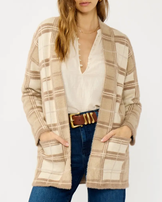 Long Sleeve Button Down Peplum Cardigan - Light Mocha