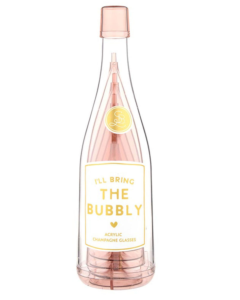 Acrylic Bottle with Champagne Glasses, Set of 5 - The Bubbly