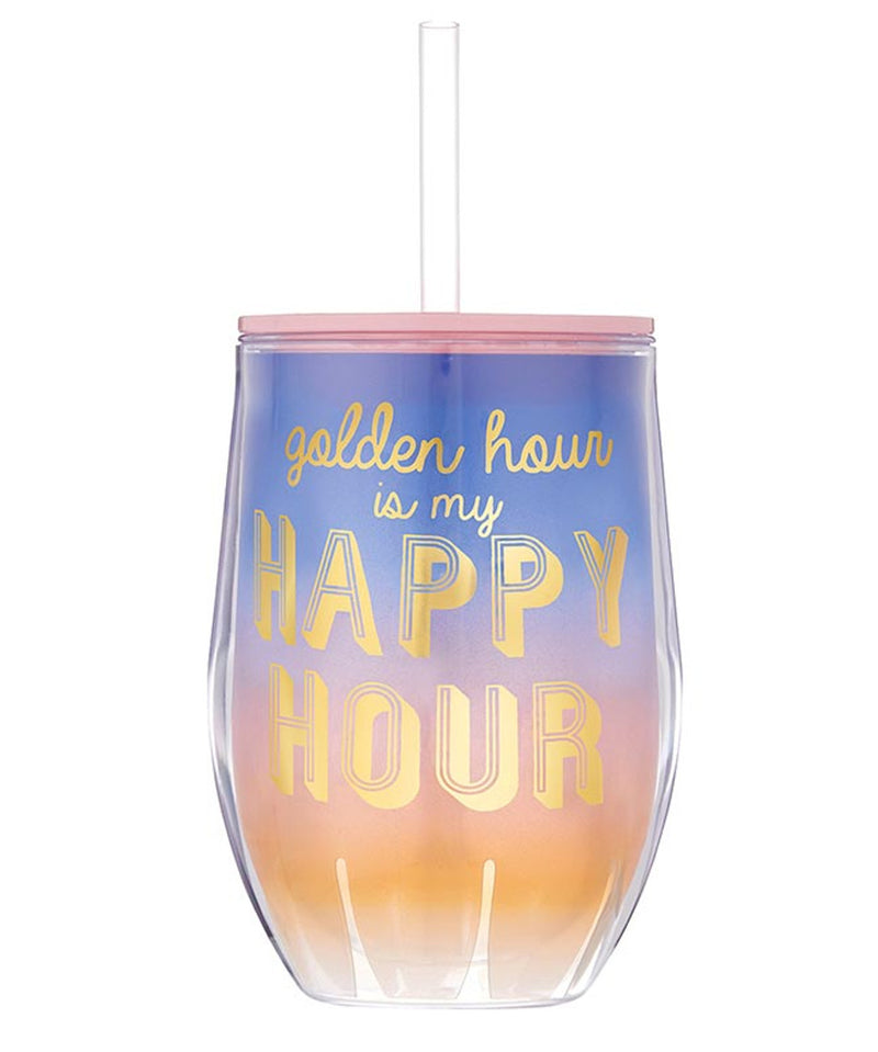 Double-Wall Wine Tumbler - Golden Hour Is My Happy Hour - FINAL SALE