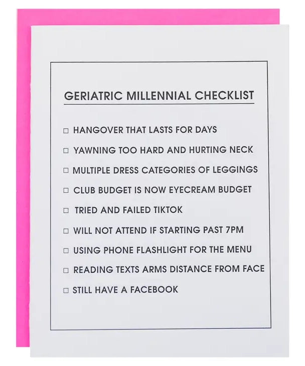 Letterpress Card - Geriatric Millennial Checklist