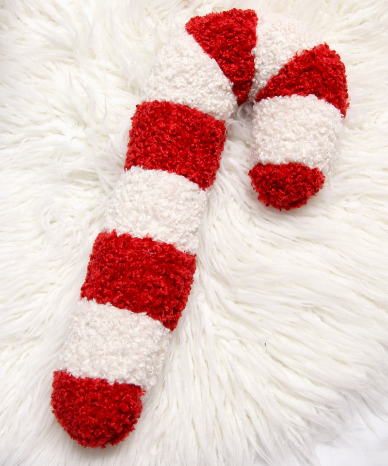 Candy Cane Sherpa Pillow - Red