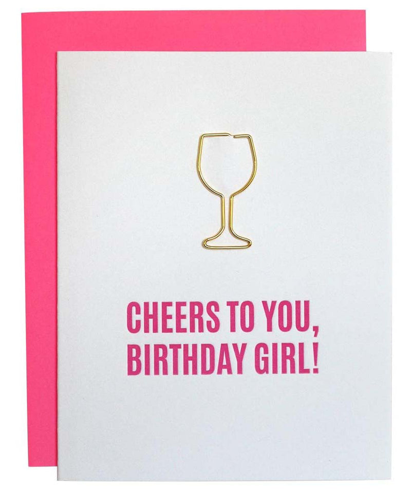 Letterpress Paperclip Card - Cheers To You, Birthday Girl