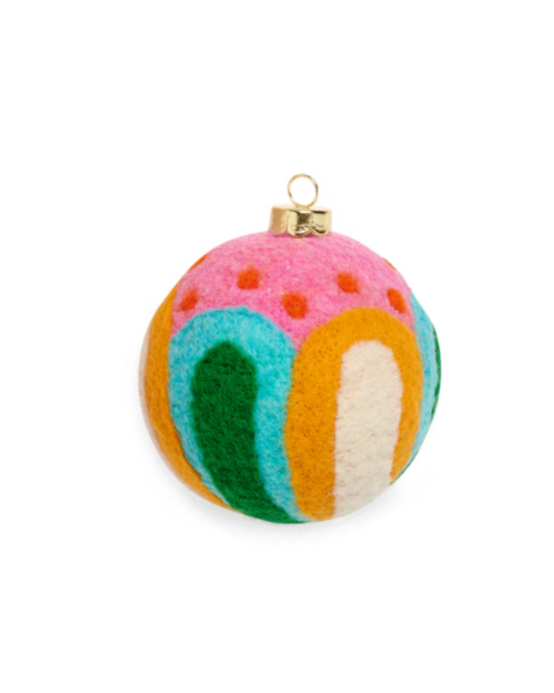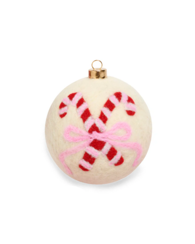 Candy Cane Ornament - Ivory/Multi Polka Dots