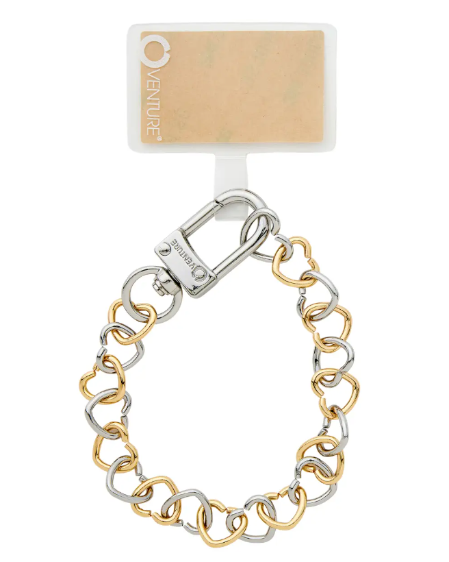Phone Charm - Mixed Metal Heart Chain Phone Wristlet