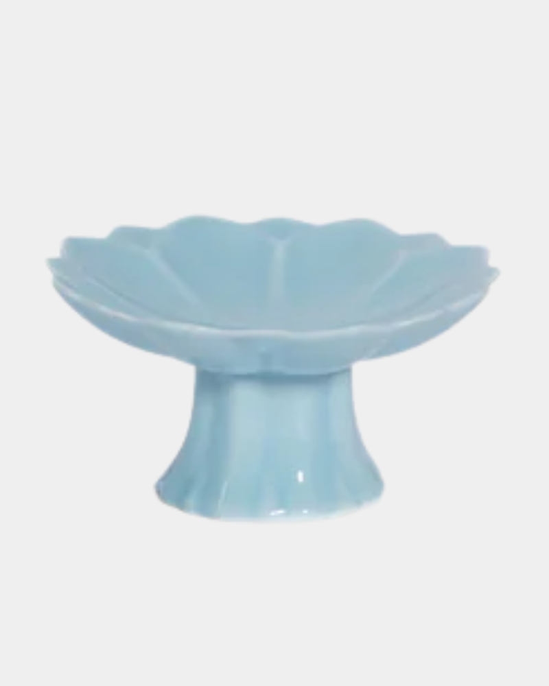 Scalloped Pedestal Dish - Light Blue