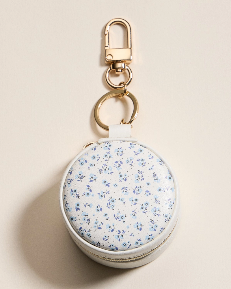 Round Jewelry Travel Case Keychain - White/Pink Floral