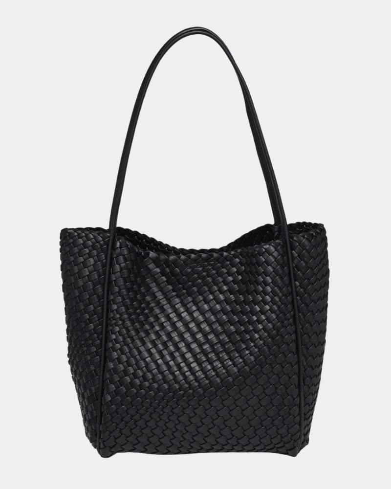 Clare V. Grande Fanny - Black/Cream Woven Checker