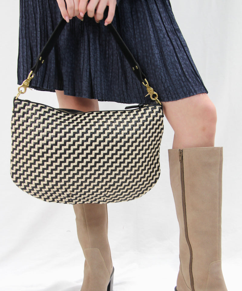 Clare V. Moyen Messenger Bag - Black/Cream Woven Zig Zag