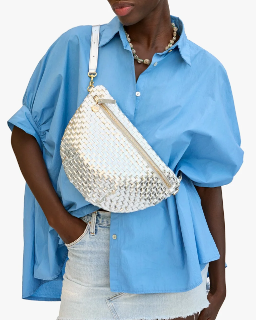 Clare V. Grande Fanny - Silver Specchio Woven Checker