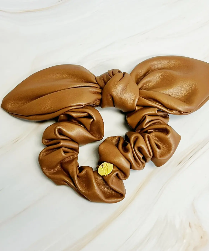Leather Hair Tie Scrunchie - Brown - FINAL SALE