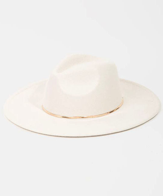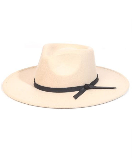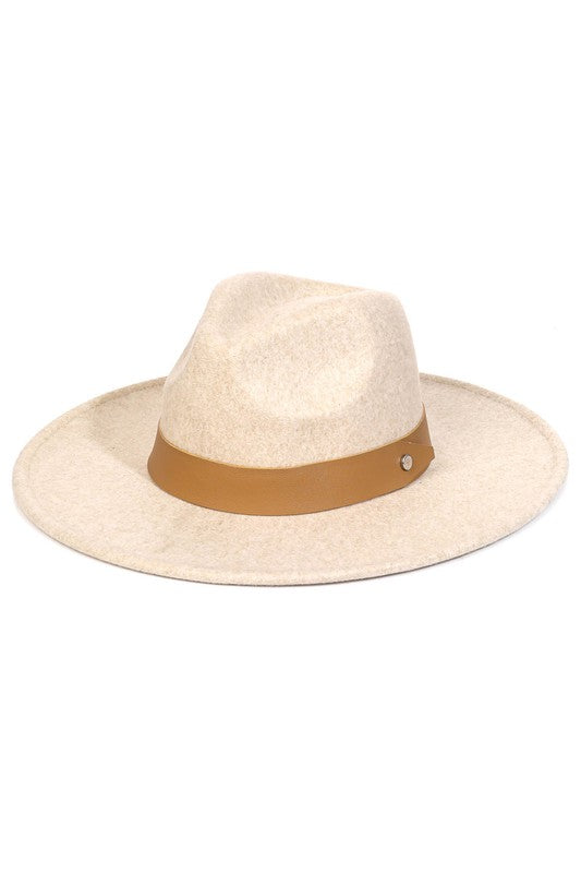 Felt Hat with Tan Accent Strap - Beige