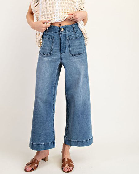 Cropped High Rise Wide Leg Jeans - Medium Wash