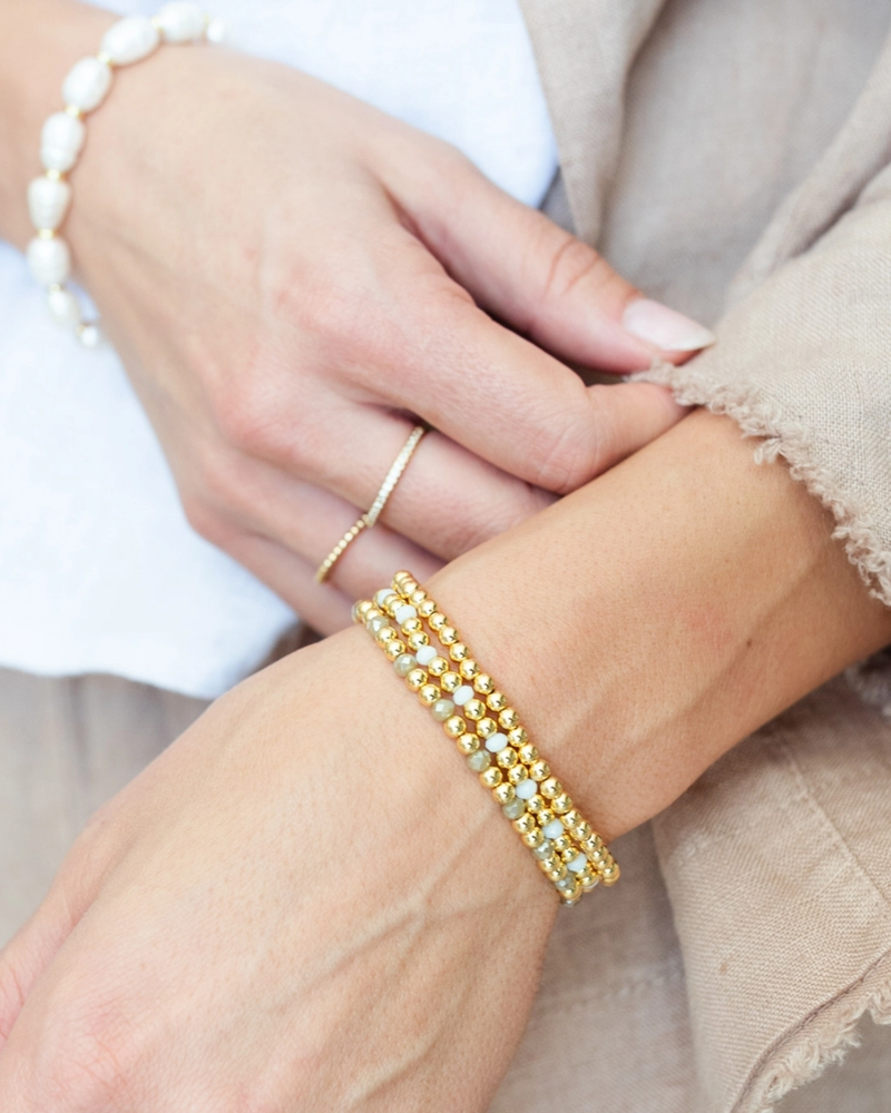 Bead & Crystal Stretch Bracelet - Light Grey