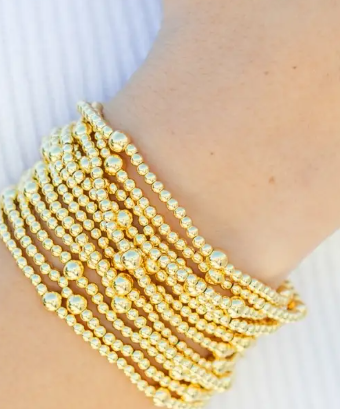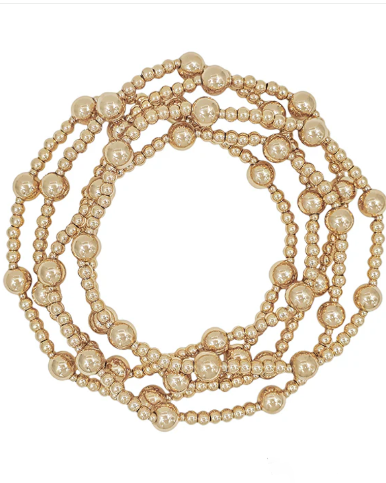 Single Gold Beaded Stretch Bracelets w/6mm Bead Accents - Gold - FINAL SALE