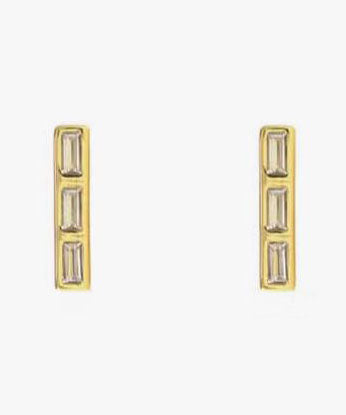 Kris Nations Triple Baguette Bar Earrings - Gold