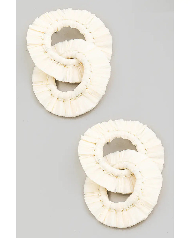Linked Raffia Fringe Hoop Drop Earrings - Ivory - FINAL SALE