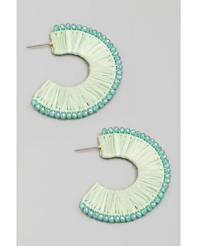 Beaded Edge Raffia Hoop Earrings - FINAL SALE