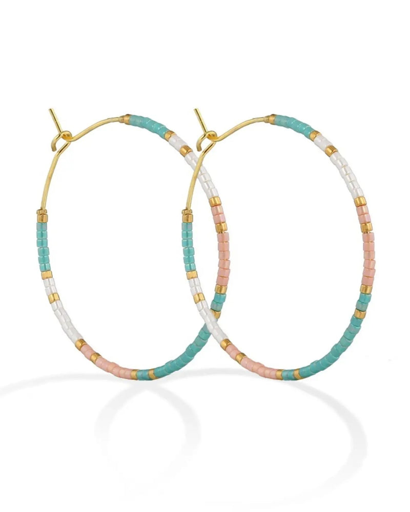 Miyuki Delica Hoop Earrings - Peach/Aqua