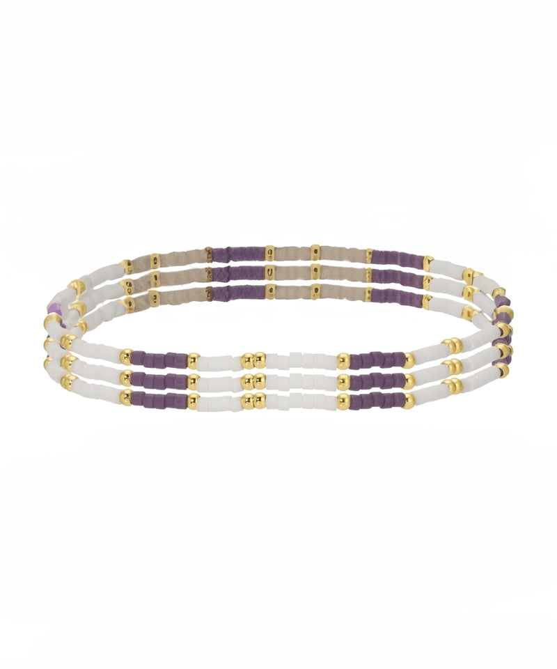 Miyuki Delica Stretch Bracelet - White/Purple - FINAL SALE