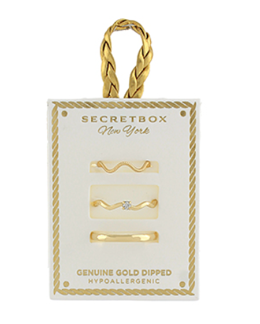 Crystal and Curved Ring Set - Gold