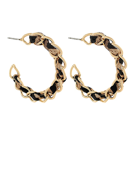 Leopard Scarf Chain Hoop Earrings - Brown/Gold