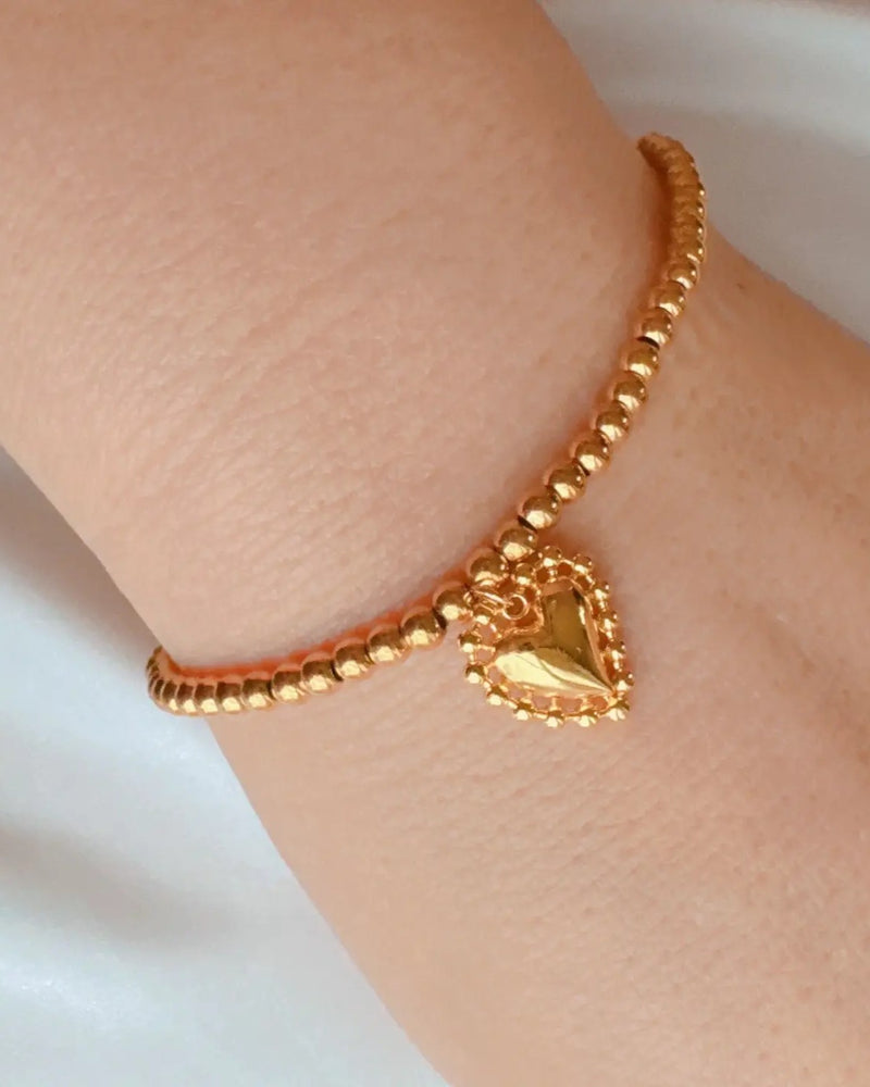 Golden Ball Single Charm Bracelet - Gold/Clustered Heart - FINAL SALE