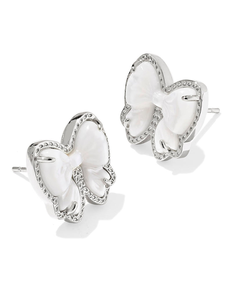 Kendra Scott Haley Bow Stud Earrings - Silver/Ivory Mother of Pearl