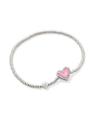 Kendra Scott Ari Heart Stretch Bracelet - Silver/Pink Iridescent Glitter Glass - FINAL SALE