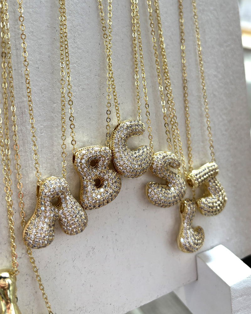 CZ Balloon Initial Bubble 18K Necklace - Gold- FINAL SALE