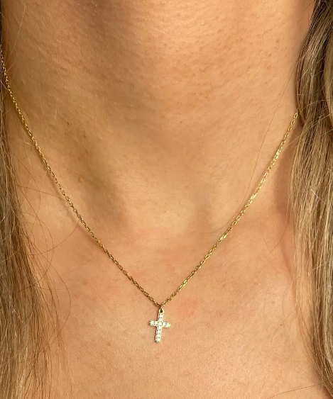 Crystal Cross Necklace - Gold