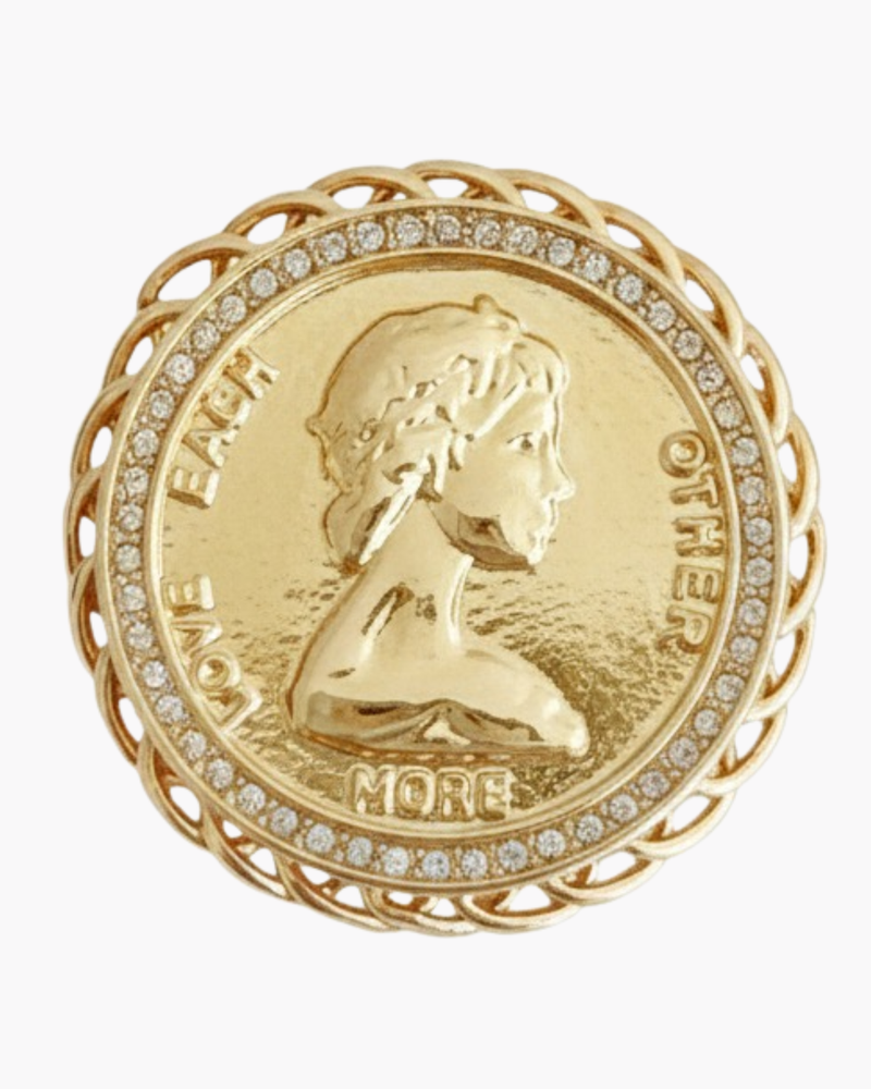 Vintage Medallion Coin Brooch - Gold