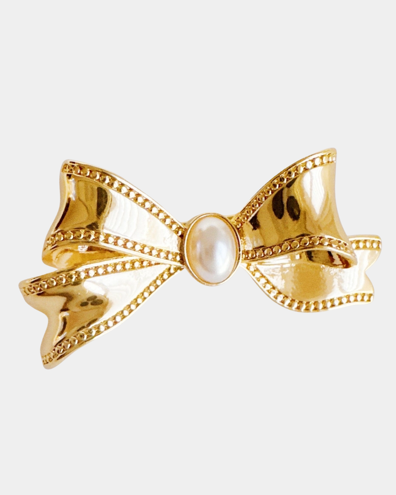 Vintage Pearl Bow Brooch - Gold