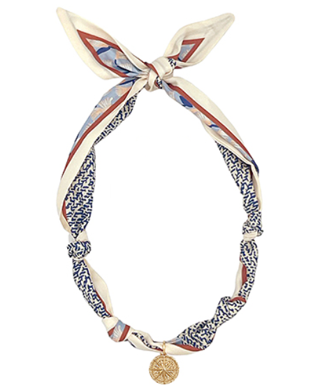 Scarf and Compass Charm Necklace - Ivory/Gold