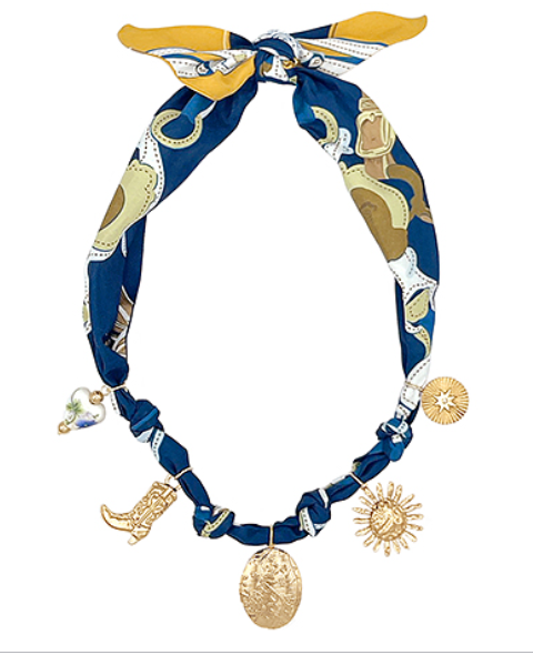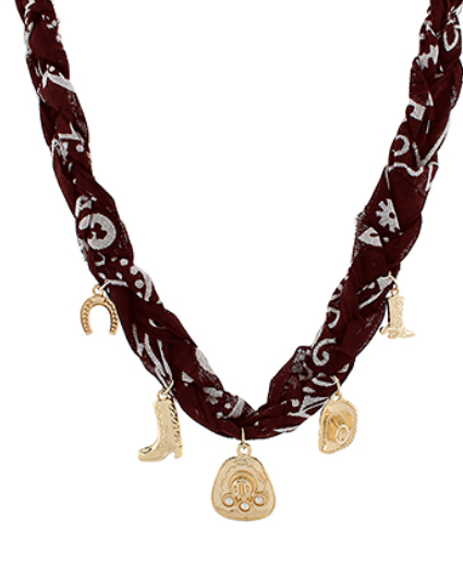 Multi Western Charm Scarf Necklace - Brown/Gold