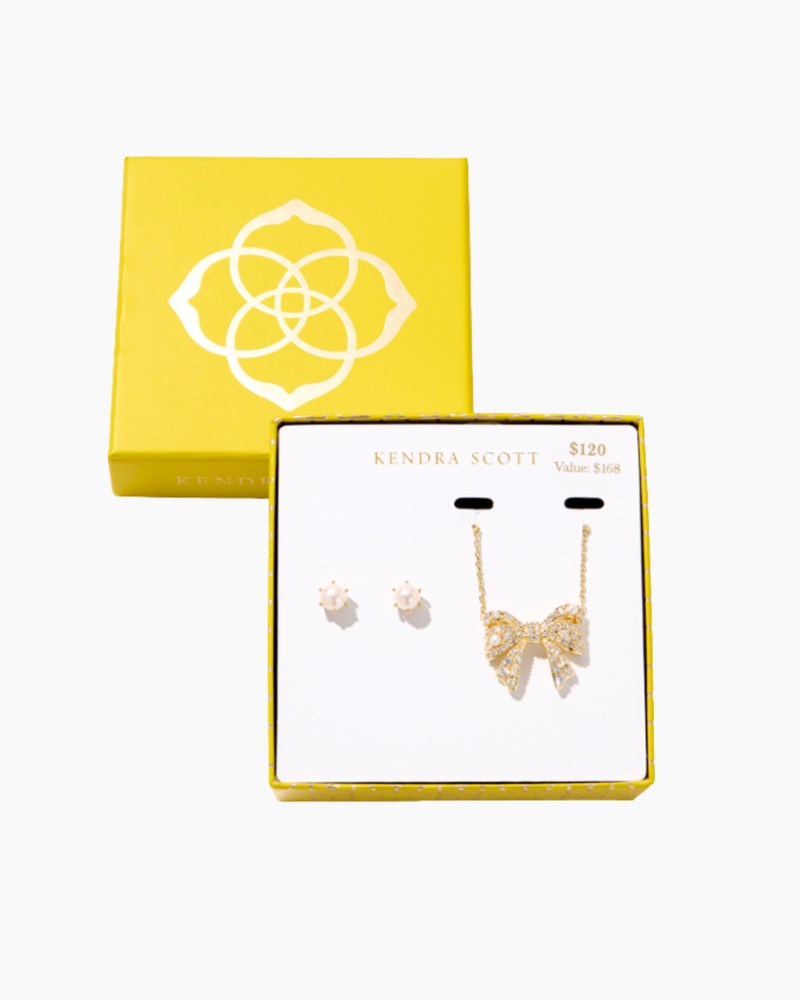 Kendra Scott Krista Bow Necklace and Ashton Earrings Gift Set - Gold/White Mix