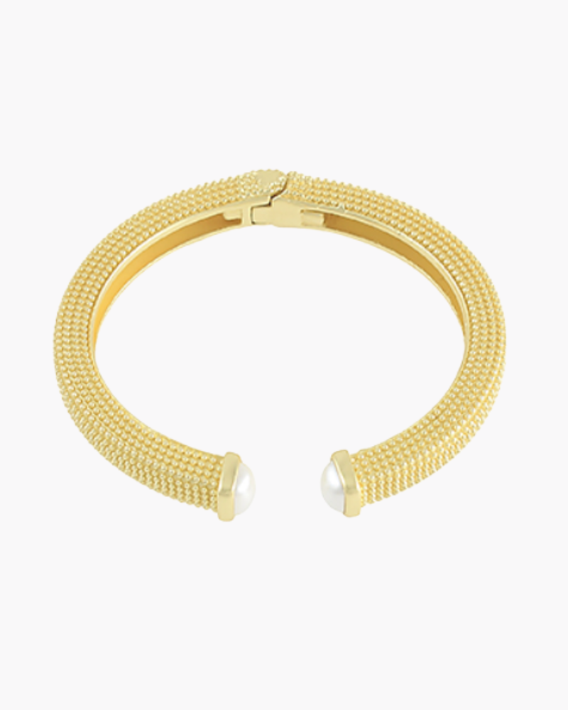 Textured Metal & Pearl Cuff - Gold