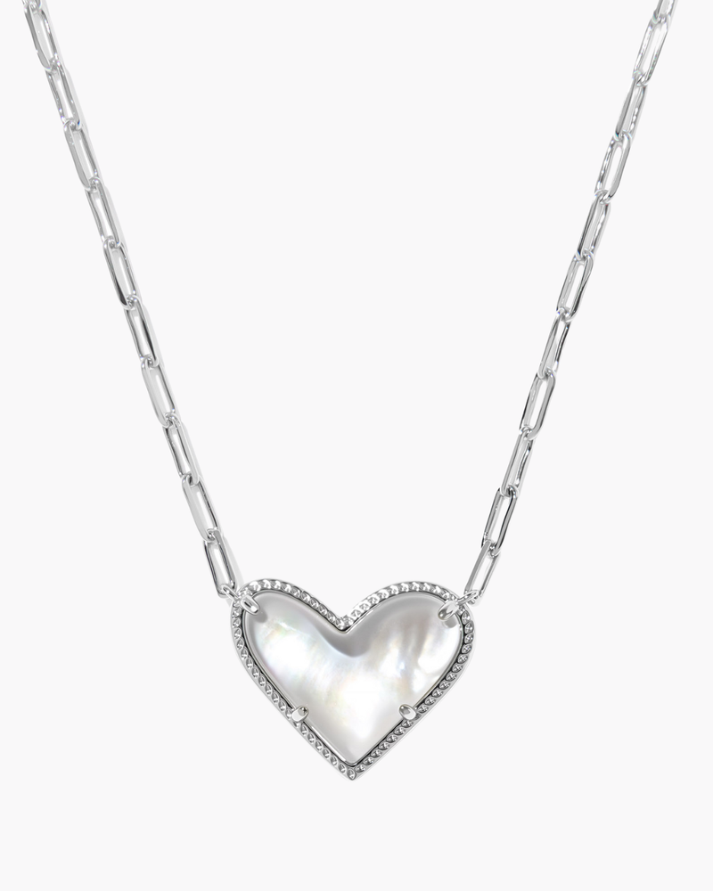 Kendra Scott Ari Heart Statement Necklace - Silver/Ivory Mother of Pearl