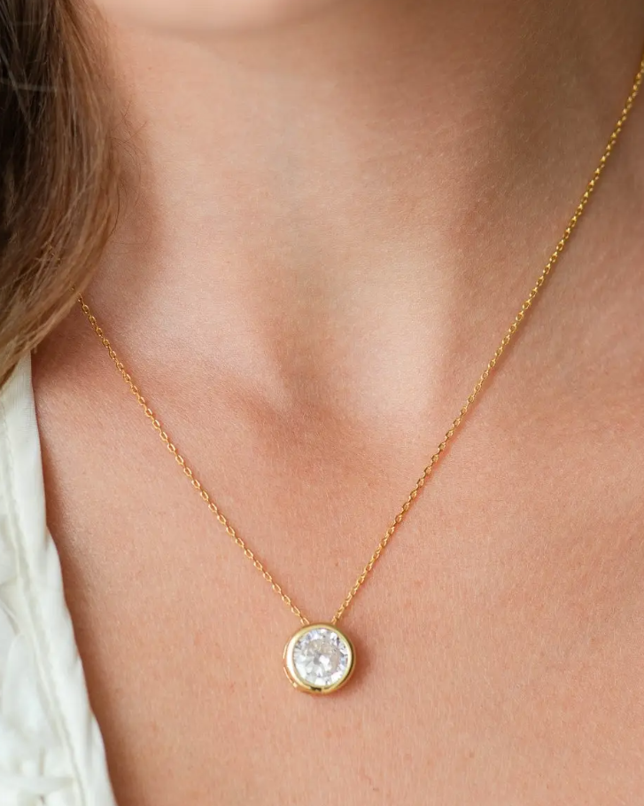 Bold Contemporary Faux Diamond Necklace - Gold
