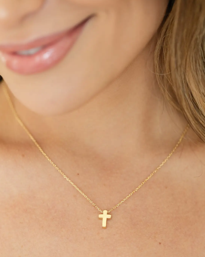 Small Simple Cross Necklace - Gold