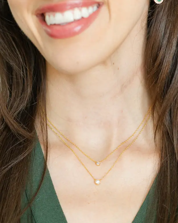 Double Layer Framed CZ Necklace - Gold
