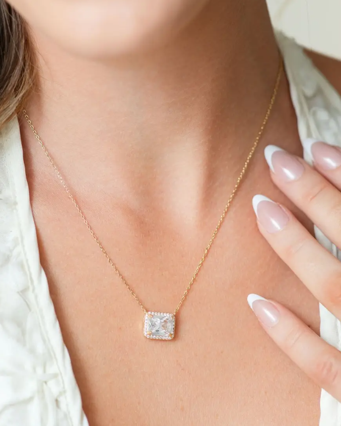 Bold Diamond CZ Rectangle Pendant Necklace - Gold