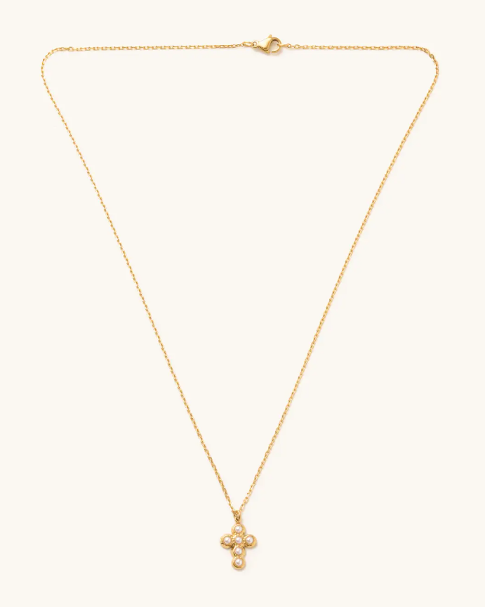 Pearl Cross Necklace - Gold